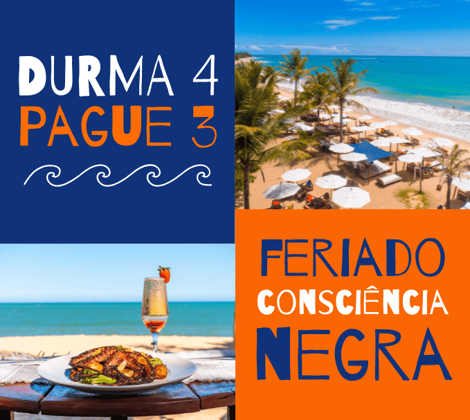 E com a promoção Durma 4 e Pague 3, você ganha uma diária extra pra aproveitar ainda mais esse paraíso!